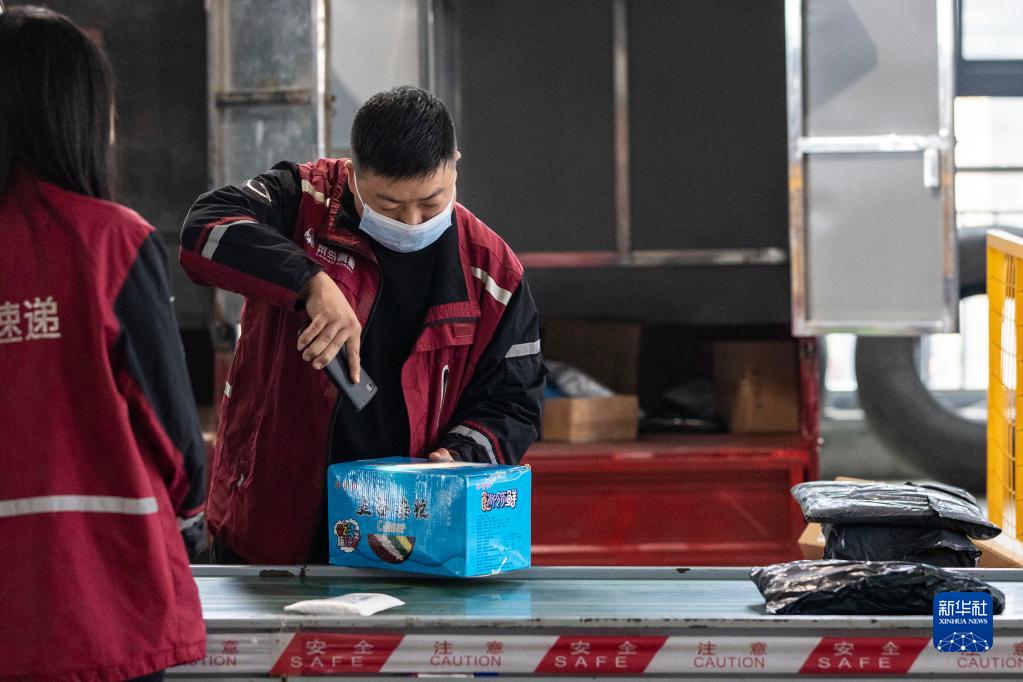 11月10日,在湖北省宜昌市秭归县一家快递企业分拨中心,工作人员在分拣快递包裹。