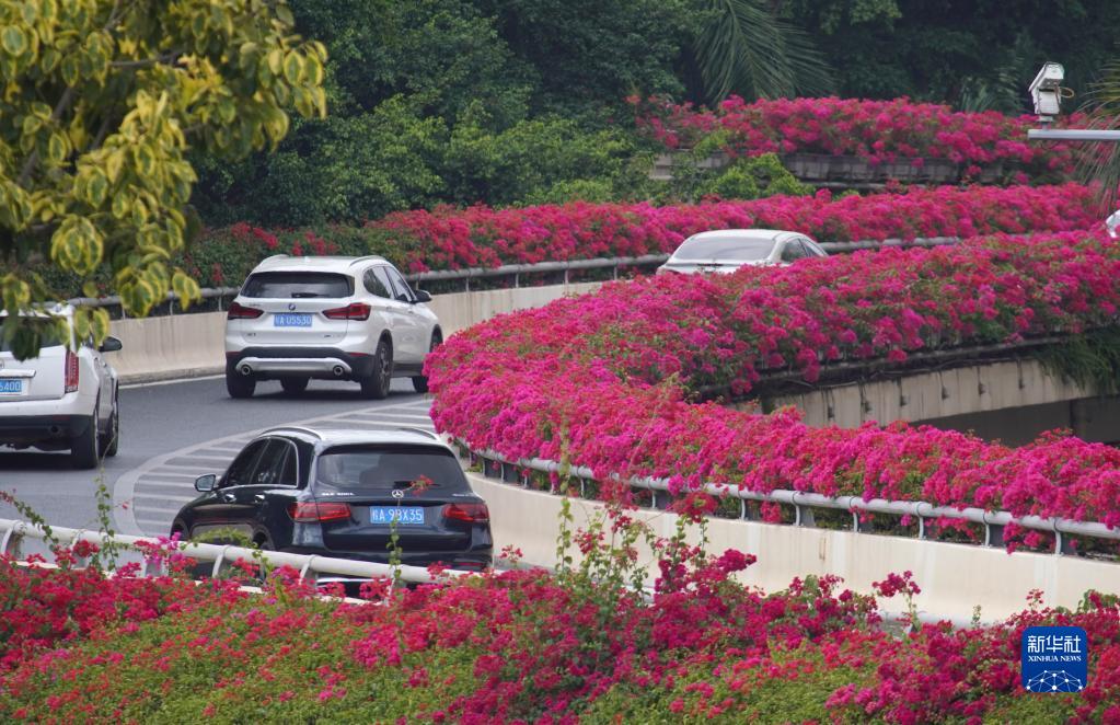 初冬时节,广西南宁市树绿花红,丰富的色彩扮靓了城市。