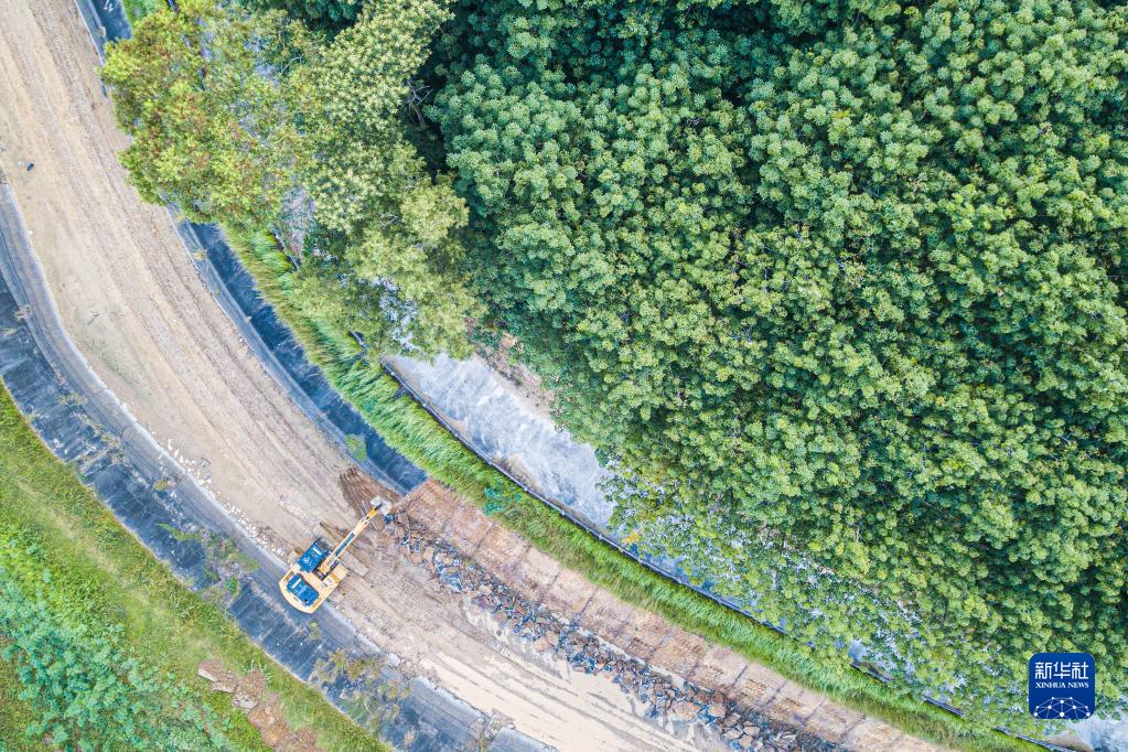 11月10日,工人在海南省儋州市进行琼西北供水工程明渠施工(无人机照片)。