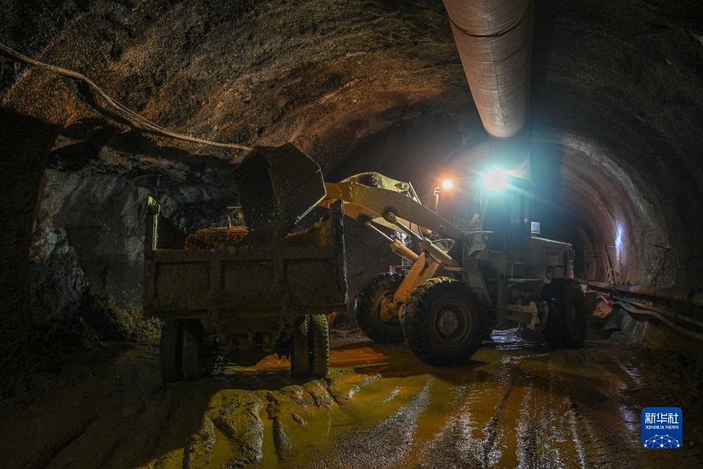 11月10日,工人在位于海南省儋州市的琼西北供水工程长岭隧洞内施工。