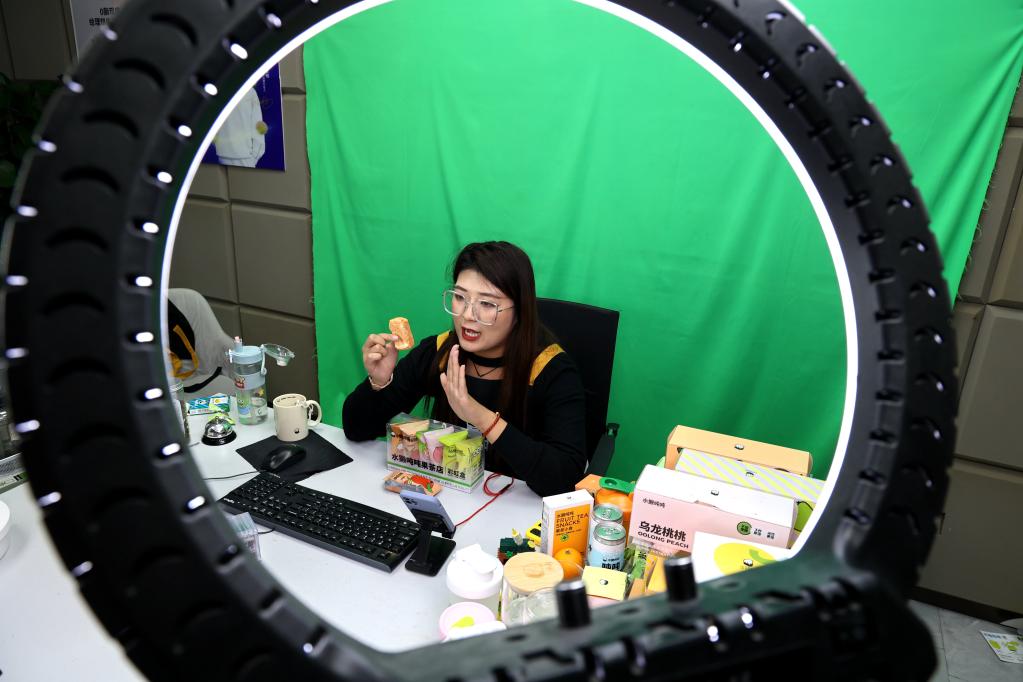 “双11”期间,网络主播在山东省滨州市滨城区彭李街道数字经济产业园直播。 新华社发(初宝瑞 摄)