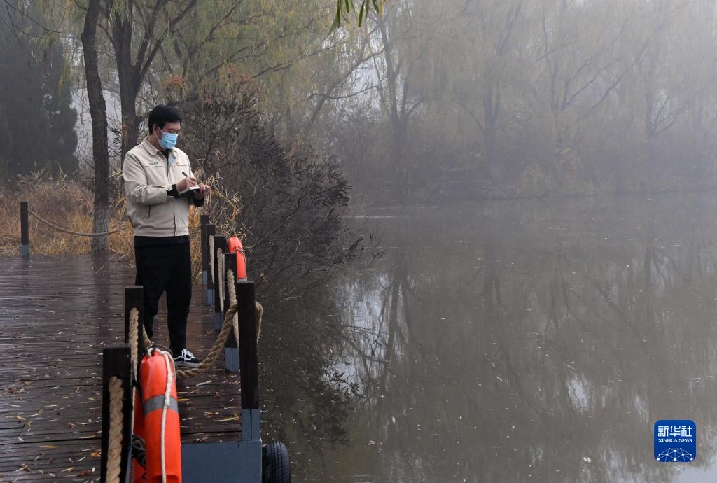 11月11日,张庚在翠湖国家城市湿地公园巡视。