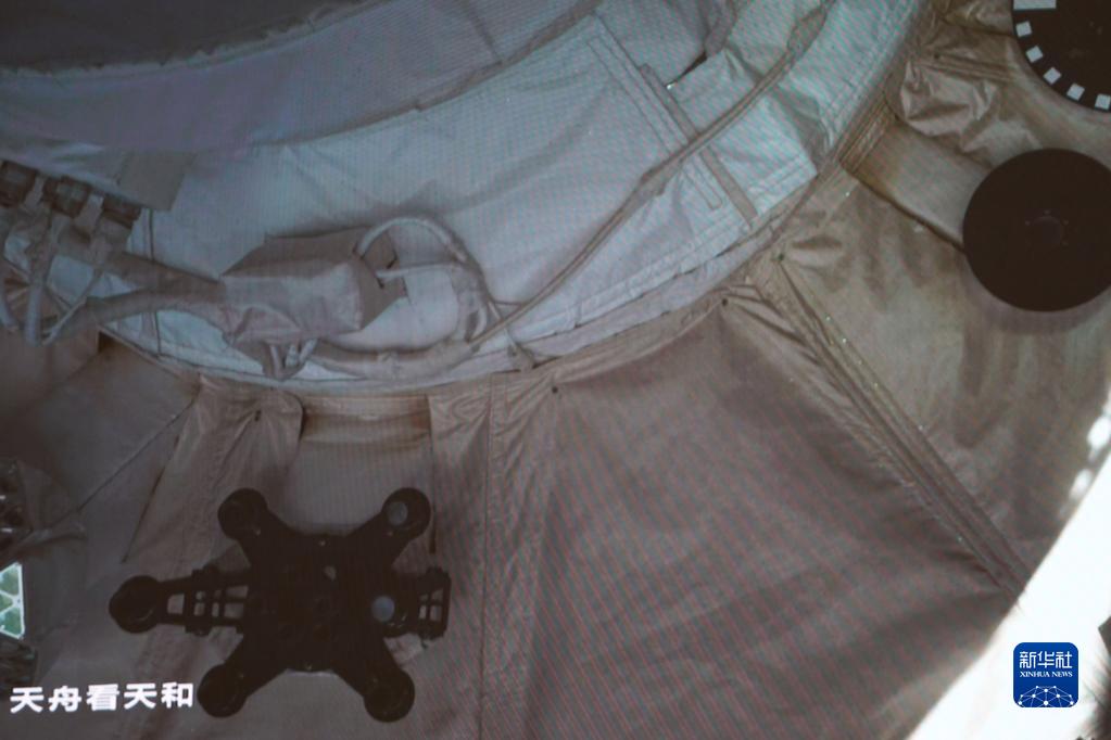 11月12日,在北京航天飞行控制中心拍摄的天舟五号货运飞船与空间站组合体完成自主快速交会对接后天和核心舱内的情况。新华社发(孙丰晓 摄)