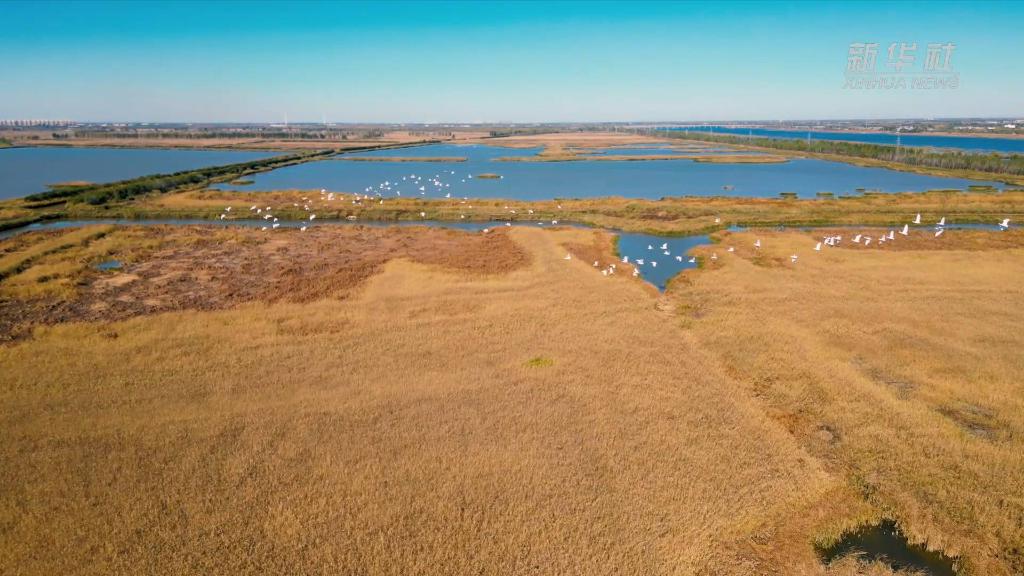 东方白鹳、大天鹅、白鹭等候鸟或追逐嬉戏,或休憩觅食,呈现出一派生机的动人景致。