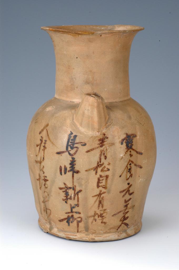 青釉褐彩“自入新峰市”诗文壶。长沙博物馆供图