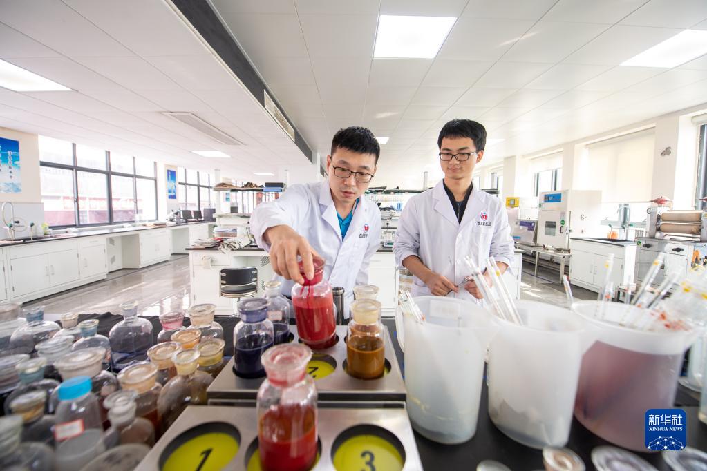 11月3日,工作人员在浙江梅盛新材料有限公司的实验室内工作。