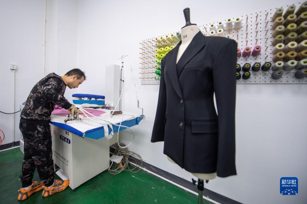 11月2日,工作人员在柯桥区一家纺织产业公司的车间内试制样衣。