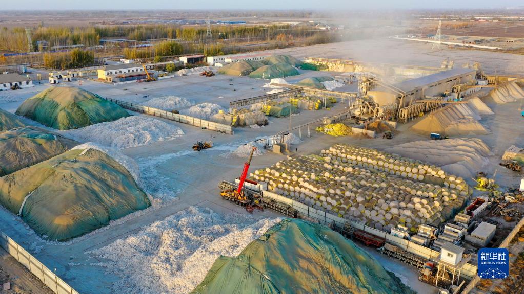 新疆沙雅县一处棉花收购企业在进行生产(11月11日摄)。
