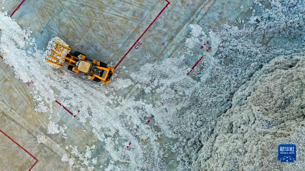 新疆沙雅县一处棉花收购企业在进行生产(11月11日摄,无人机照片)。