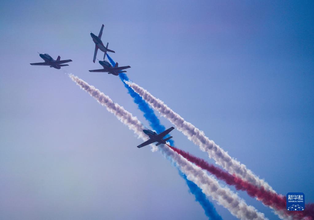11月13日,第十四届中国航展闭幕当天,空军航空大学“红鹰”飞行表演队进行飞行表演。新华社发(栾铖 摄)