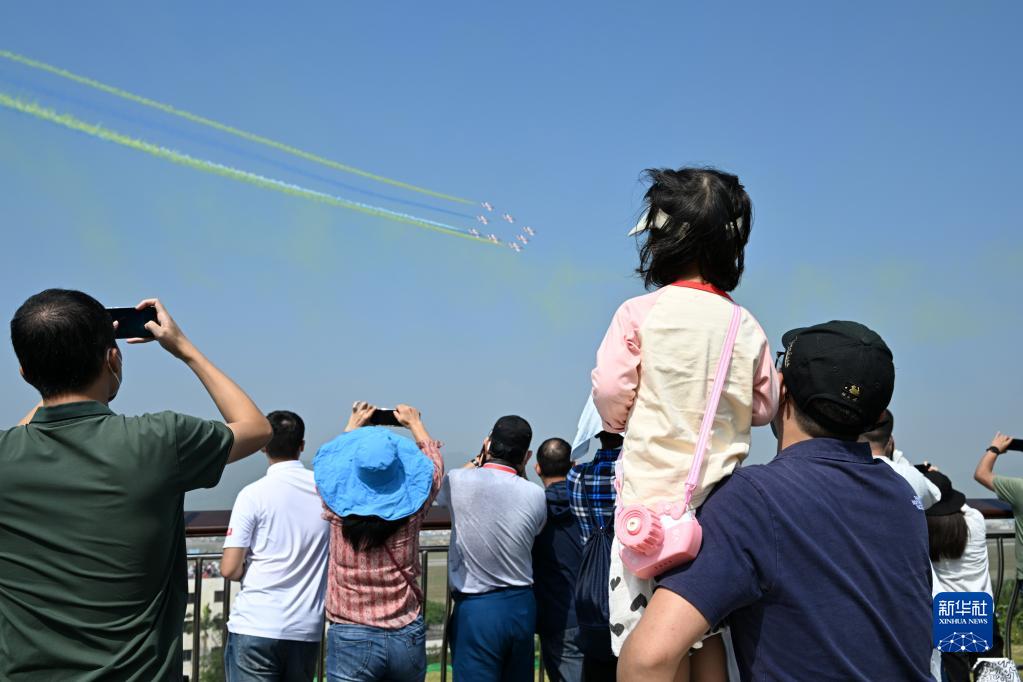 11月13日,第十四届中国航展闭幕当天,观众在现场观看飞行表演。新华社发(余红春 摄)