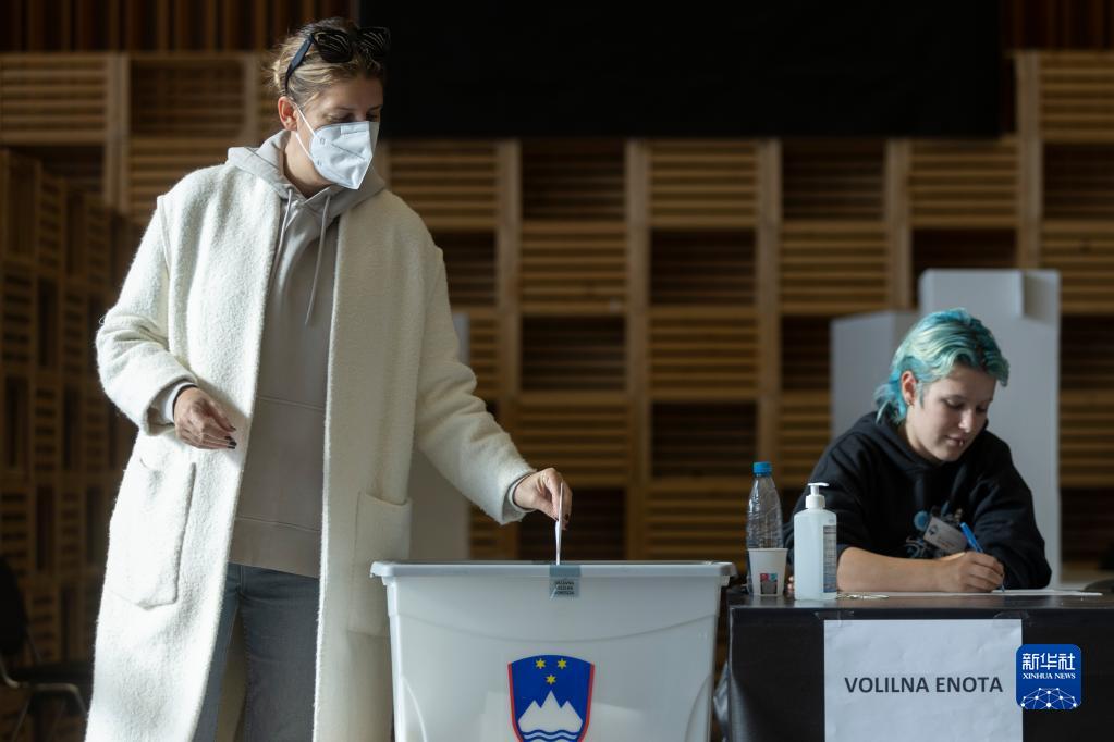 11月13日,选民在斯洛文尼亚卢布尔雅那一处投票站投票。新华社发(泽利科·斯特凡尼奇 摄)