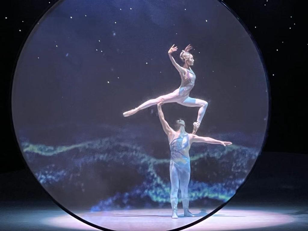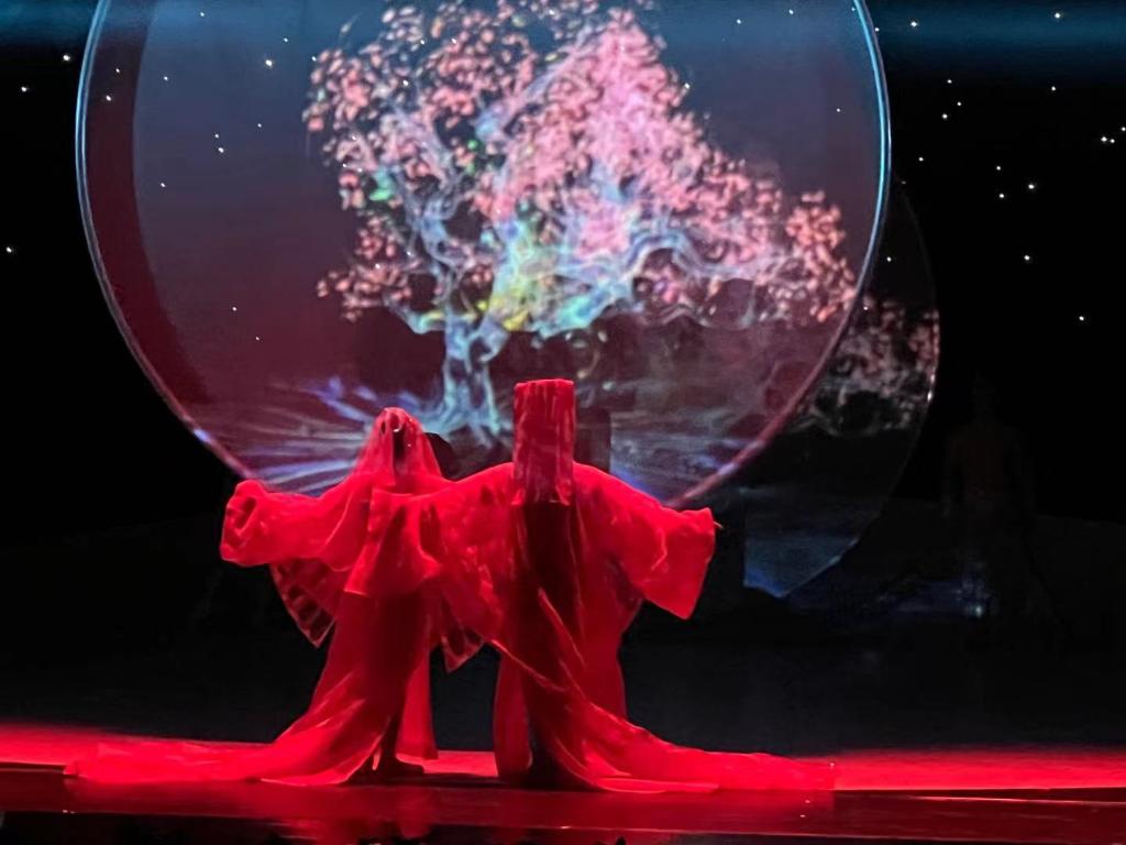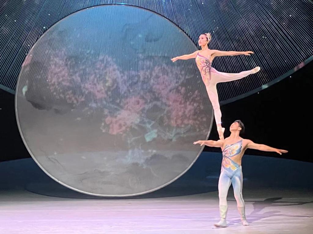 杂技剧《化·蝶》中,梁山伯和祝英台携手化蝶。 新华社记者 韩佳诺 摄