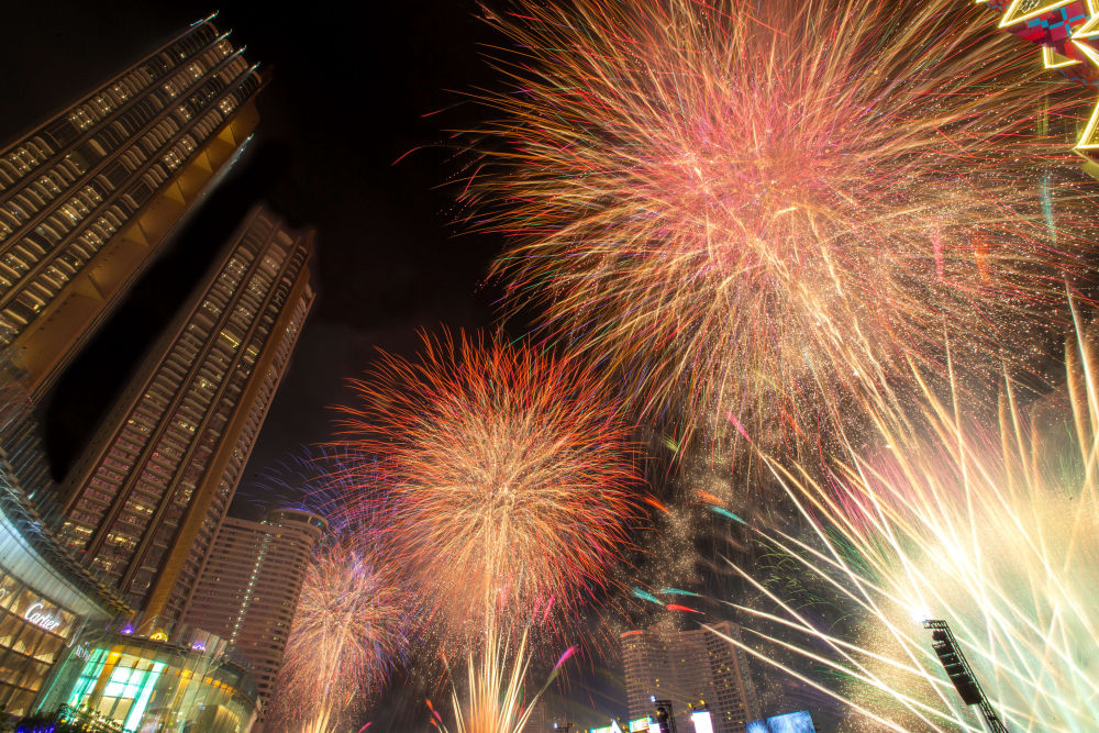 ↑这是2022年1月1日在泰国曼谷拍摄的新年焰火秀。