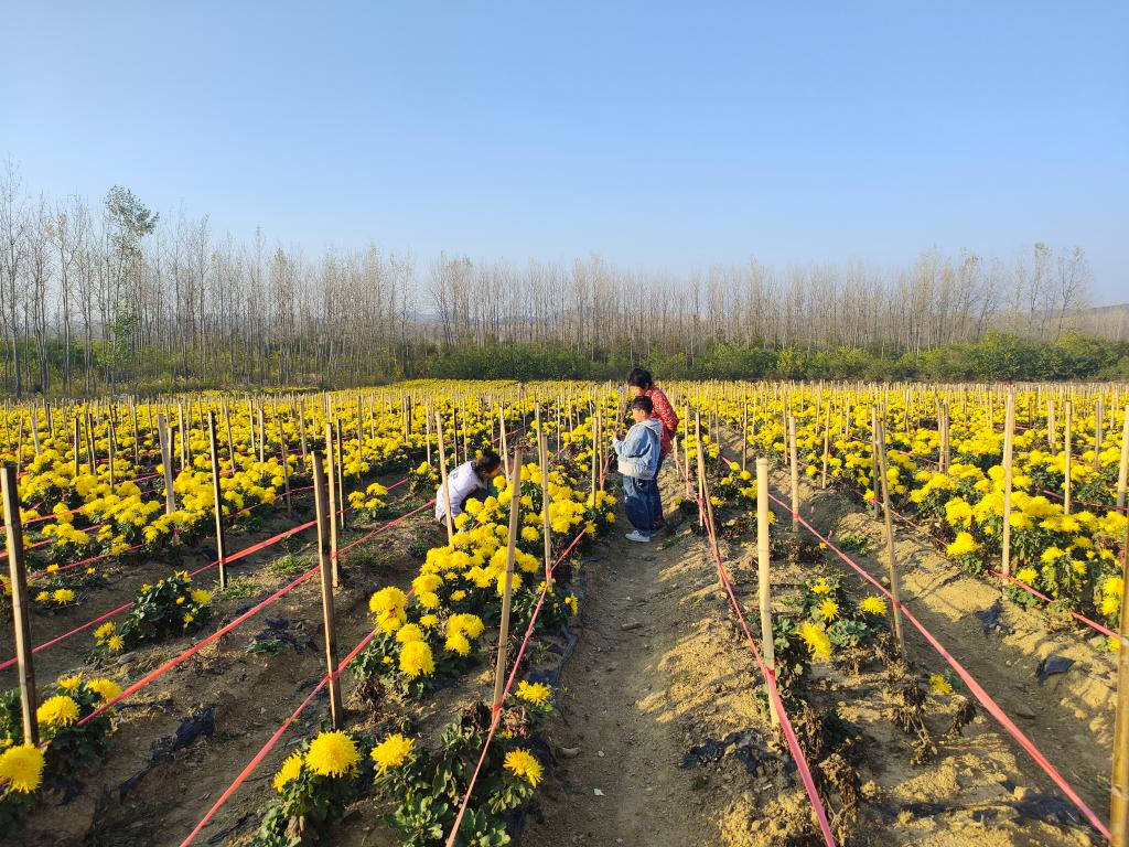 “政府部门帮着协调土地流转、申报农业项目等,助力菊花产业快速发展。我们基地去年产值约30万元。”赵志强说,基地也为村民们在家门口提供了务工机会,高峰期一天需要100多人共同劳作。“下一步,我们将适当扩大种植规模,探索订单生产,做大做强菊花产业,带动更多村民增收。”赵志强信心满满地说。