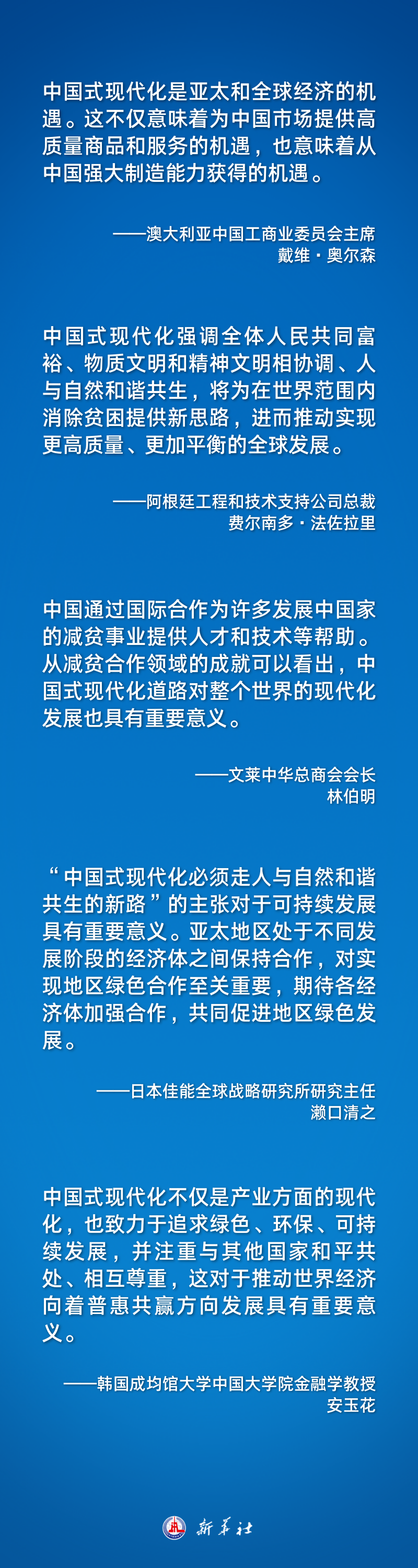 “中国式现代化是亚太和全球经济的机遇。”澳大利亚中国工商业委员会主席戴维·奥尔森说,“这不仅意味着为中国市场提供高质量商品和服务的机遇,也意味着从中国强大制造能力获得的机遇。”