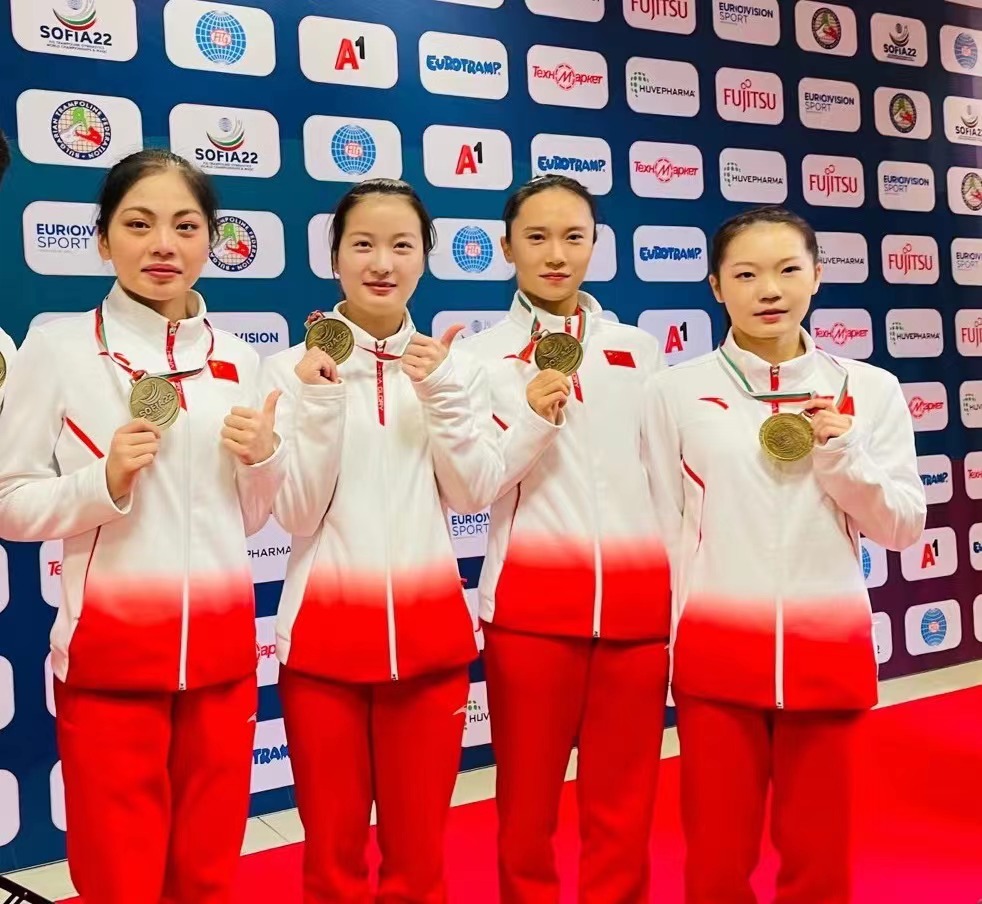 新华社北京11月19日电(记者牛梦彤、林浩)当地时间18日晚,在保加利亚索非亚举办的2022年蹦床世锦赛中,由曹云珠、朱雪莹、胡译乘和范心怡组成的中国队,收获女子网上团体赛金牌,英国队和日本队分获银牌和铜牌。