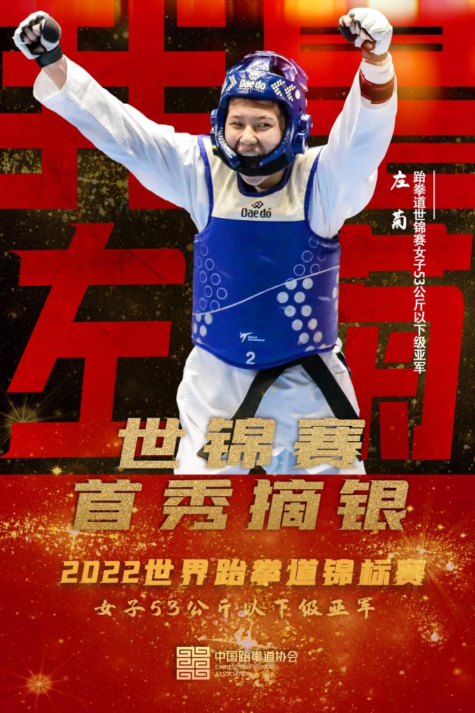 在女子53公斤级的比赛中,左菊对阵美国选手格林伍德。首局两人比分打平,裁判依据进攻主动性等因素判定格林伍德该局取胜。第二局,左菊近身内摆击头将局分扳平。关键局中,左菊开局就以击头取得领先,并始终保持优势。最后时刻,格林伍德施展后旋技术追分,脚尖轻扫过左菊护具上分,将比分反超,最终左菊收获亚军。