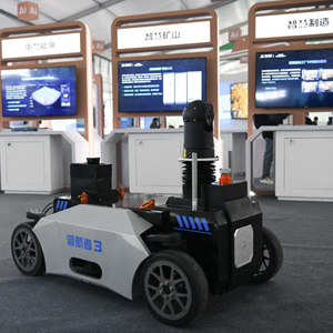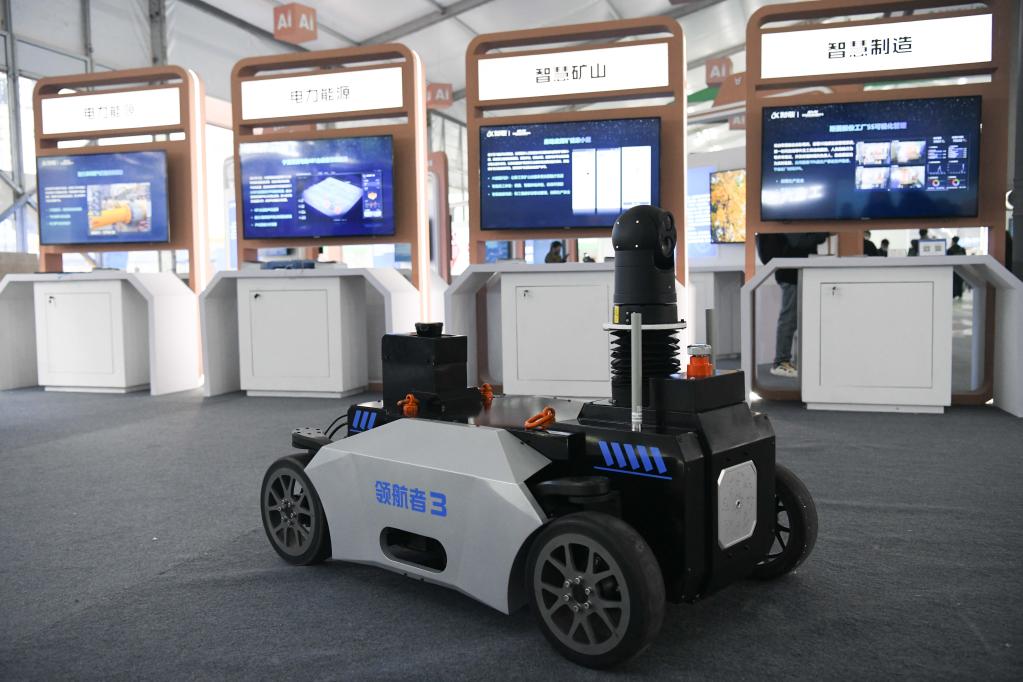 这是第五届世界声博会展出的轮式防爆巡检机器人(11月17日摄)。新华社记者 张端 摄