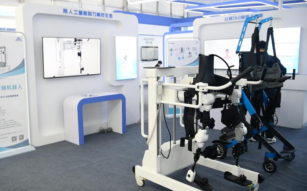 这是11月18日拍摄的第五届世界声博会展出的下肢外骨骼机器人。新华社记者 张端 摄