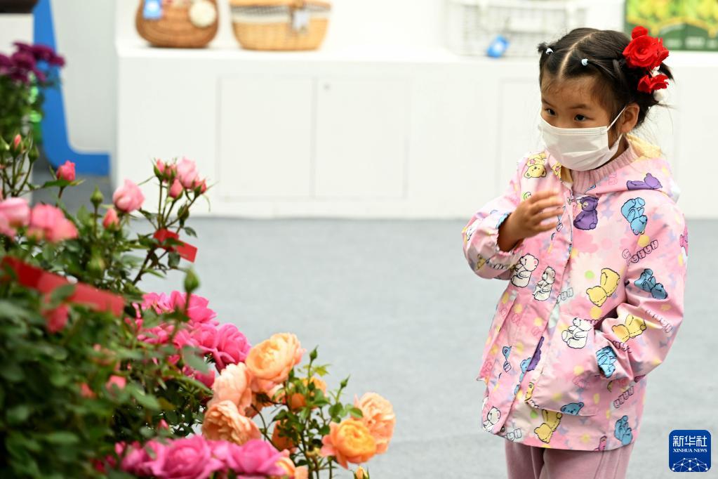 11月19日,小朋友在2022中国·合肥苗木花卉交易大会上参观。
