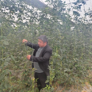 杨利明在大棚内查看蔬菜长势。新华社记者周勉 摄