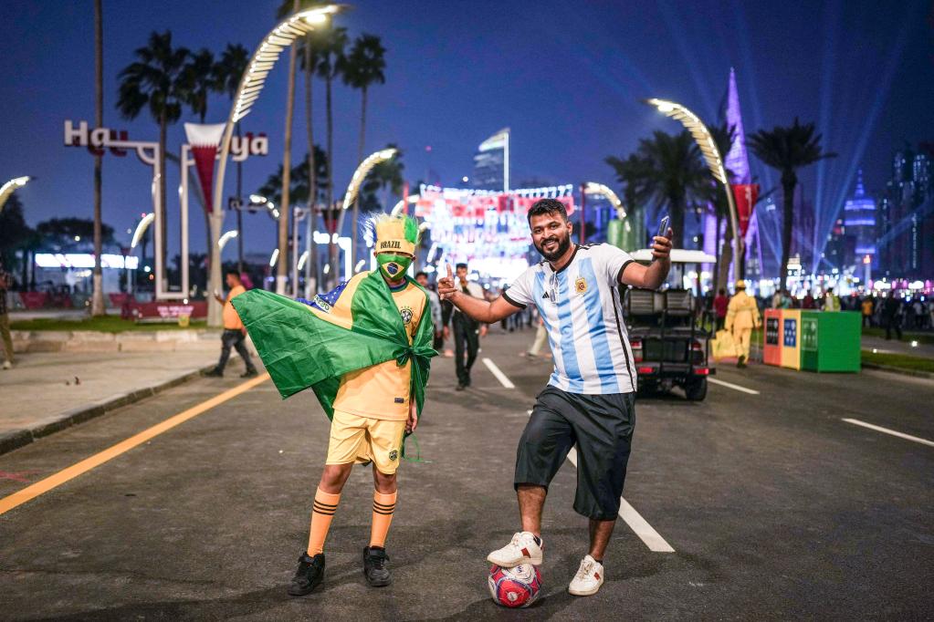 11月18日,球迷在滨海大道上留影。新华社记者 潘昱龙 摄