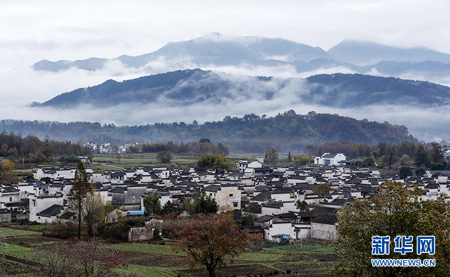 当日,雨后初霁的安徽省黄山市黟县宏村镇云雾缭绕,鳞次栉比的徽派民居掩映其间,若隐若现,美不胜收。新华网发(施亚磊 摄)