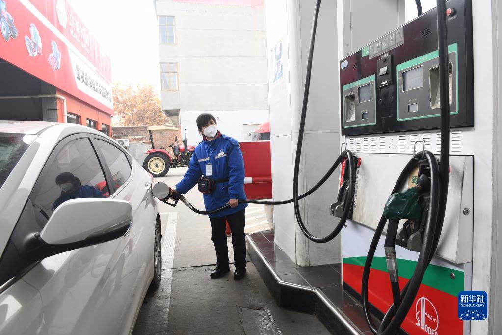 11月21日,河北省新乐市一家加油站的工作人员给汽车加油。新华社发(贾敏杰 摄)