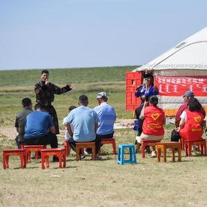 每次演出前,乌兰牧骑队员会向牧民群众宣讲防疫、防火、畜牧业生产等知识,也常帮牧民打草、清理羊圈。