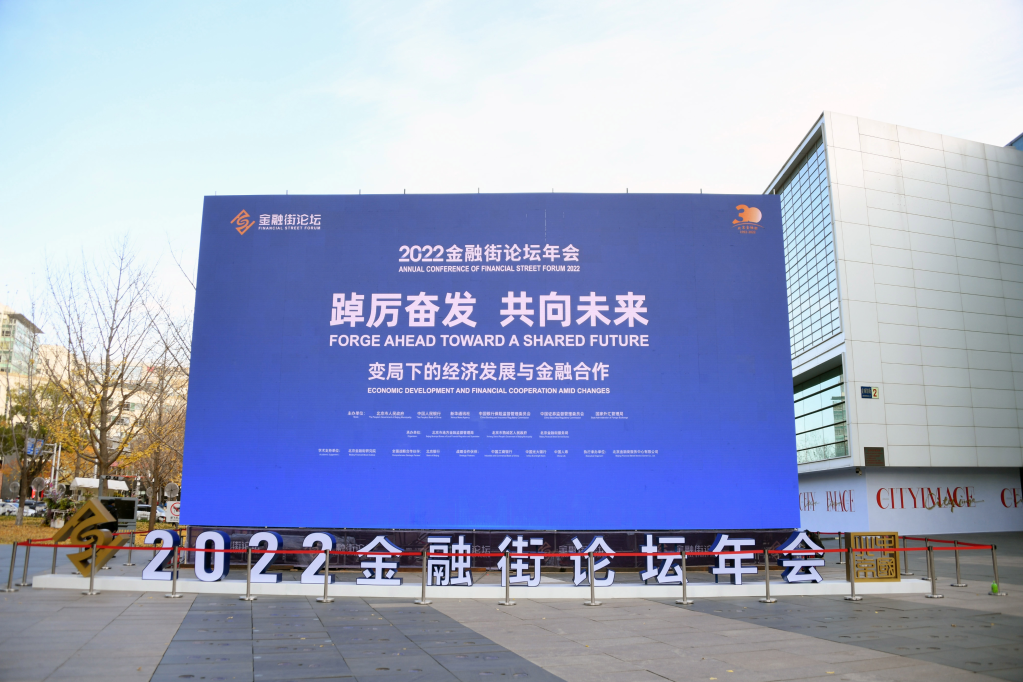11月21日在北京金融大街附近拍摄的2022金融街论坛年会标识。新华社记者 任超 摄