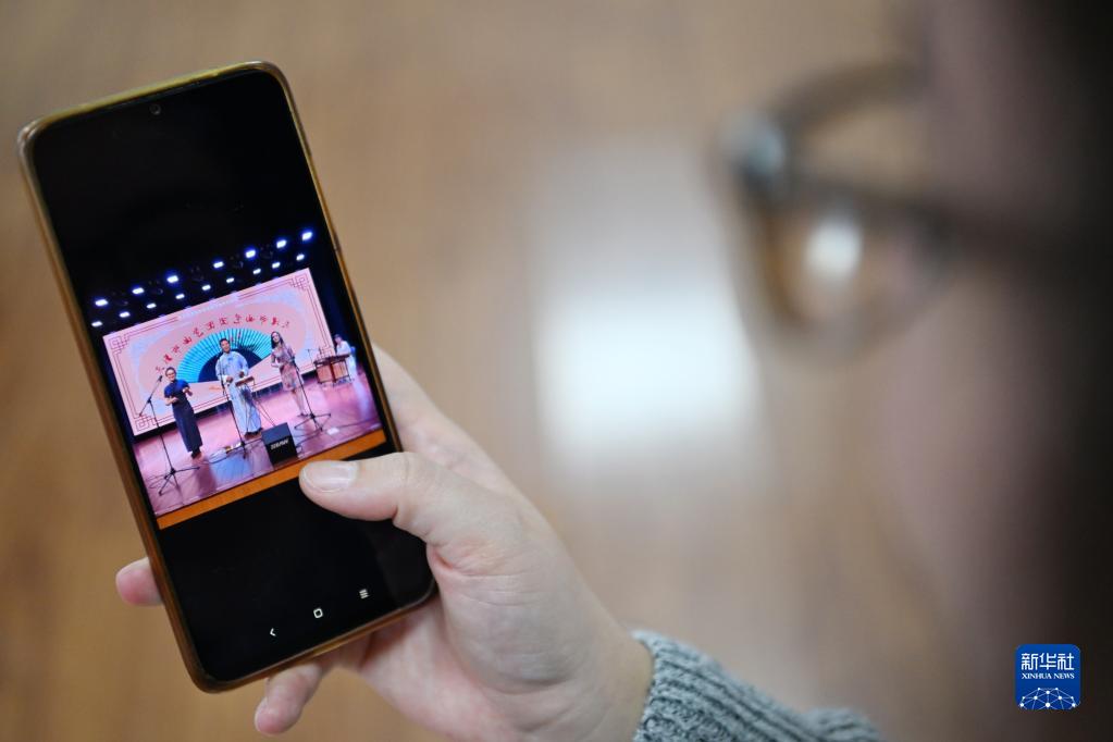 11月20日,在南开大学的一间教室内,艾茉莉用手机展示她登台演出时的照片。