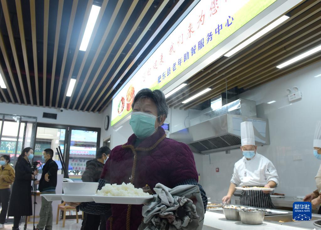 11月22日,安徽省合肥市肥东县老年助餐服务中心内,老人们准备就餐。