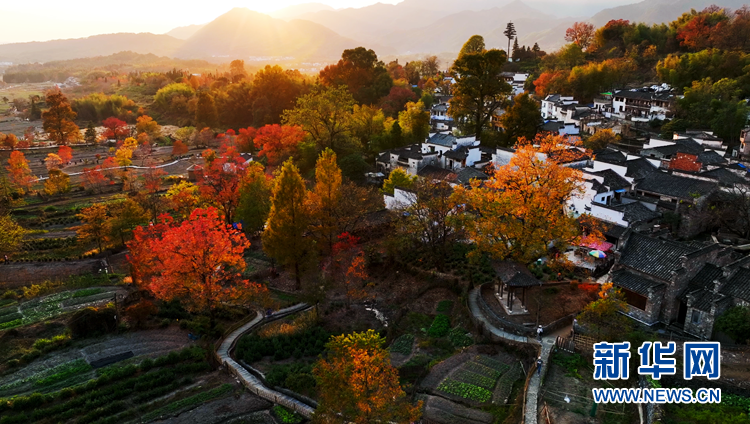 初冬时节,位于安徽省黄山市黟县的塔川村色彩斑斓,景色迷人,丛林掩映下徽派民居错落有致,古朴而典雅,美不胜收,令人流连忘返。新华网发(项晔 摄)