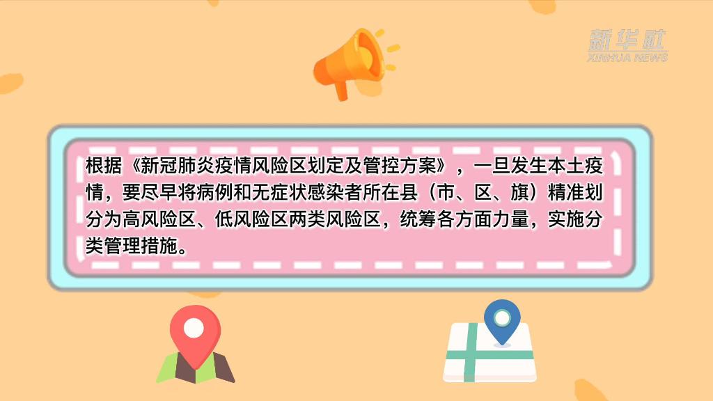 国务院联防联控机制综合组近日公布了《新冠肺炎疫情防控核酸检测实施办法》《新冠肺炎疫情风险区划定及管控方案》《新冠肺炎疫情居家隔离医学观察指南》《新冠肺炎疫情居家健康监测指南》4个文件,进一步指导各地各部门做好疫情防控工作。二十条优化措施将风险区由“高、中、低”三类调整为“高、低”两类。不同风险区域划定的标准是什么?分别需要采取哪些防控措施?点击视频,为您解答。