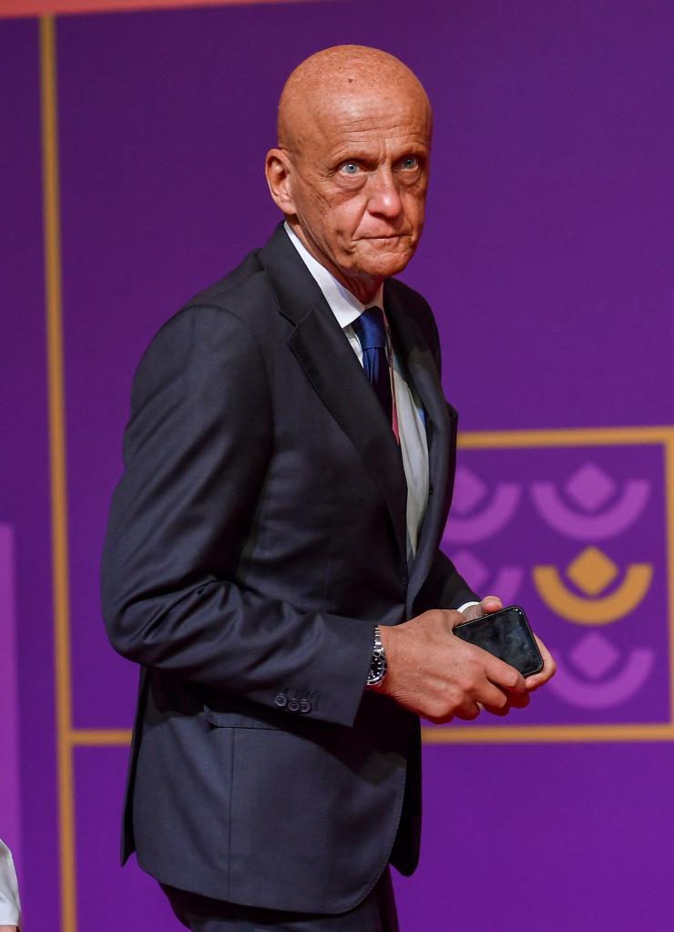 2022年4月1日,国际足联裁判委员会主席、意大利前足球裁判员科里纳出席卡塔尔世界杯抽签仪式