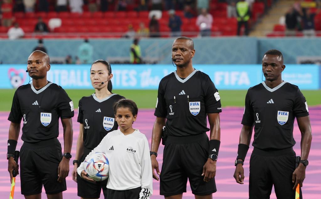 11月23日,卡塔尔世界杯F组比赛中,比利时队对阵加拿大队,第四官员山下良美(左二)在比赛前