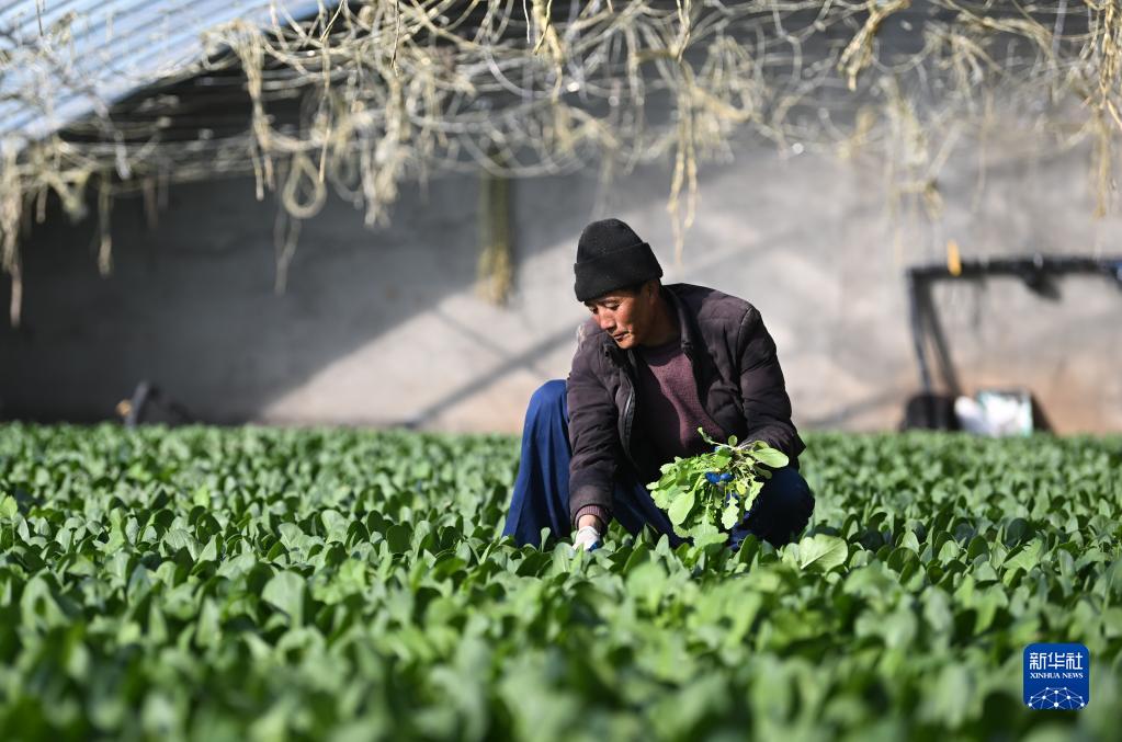 冬日时节,青海省西宁市大通回族土族自治县的蔬果大棚内,菜农忙着进行冬种、冬收等工作,保障蔬果市场供应。近年来,大通县大力发展高效设施农业,鼓励农民成立专业合作社,扩大高原绿色蔬菜种植,助力乡村振兴。