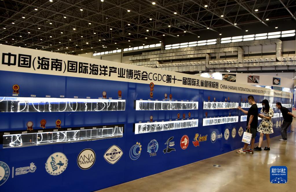 11月25日,观众在2022年中国(海南)国际海洋产业博览会上观赏孔雀鱼。