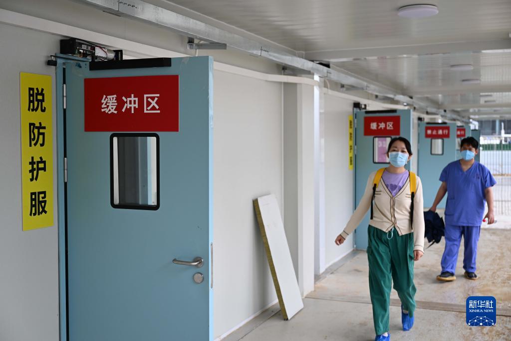 在广州黄埔区中新知识城方舱医院,医护人员提前进入熟悉设施情况(11月24日摄)。新华社记者 邓华 摄