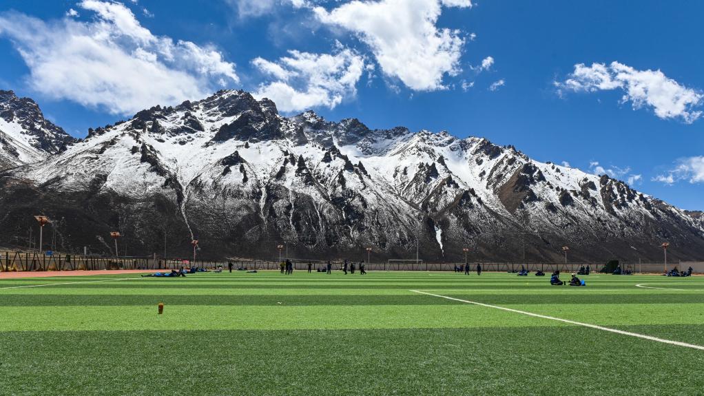 ↑这是那曲市嘉黎县中学的足球场(3月30日摄)