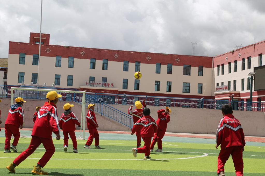 那曲聂荣县小学的学生们正在踢足球(4月20日摄)