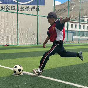 ↑当雄县中学的学生们正在踢足球(1月5日摄)