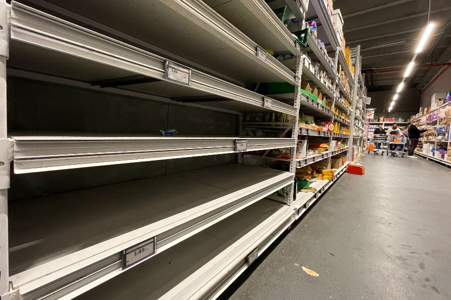 2022年10月31日,比利时布鲁塞尔一家超市售卖平价鸡蛋的货架空空如也。新华社记者郑焕松摄