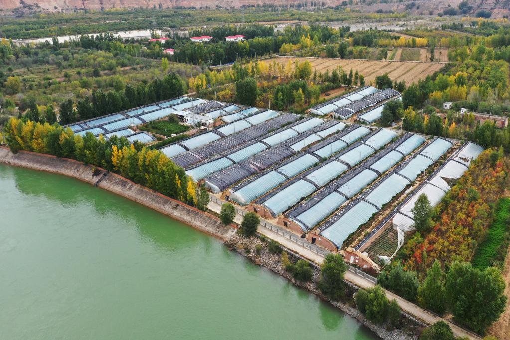 位于青海省黄南藏族自治州尖扎县康杨镇的温室大棚(无人机照片)。新华社记者 陈杰 摄