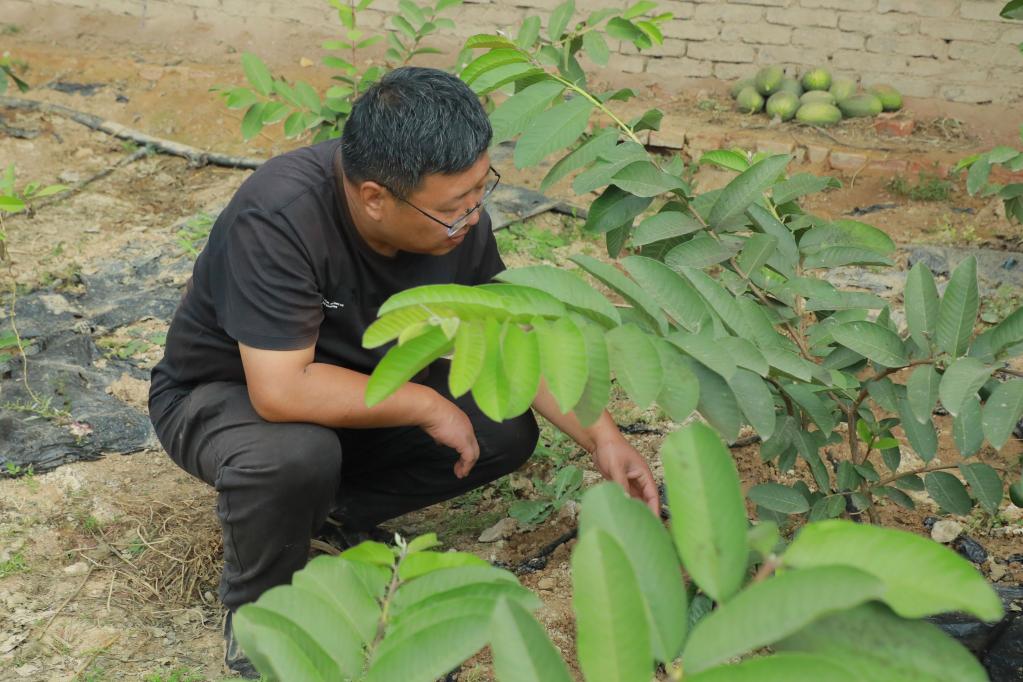 白恒玮在为番石榴疏果,这样可以使留下的果实更好地生长。新华社记者 王艳 摄