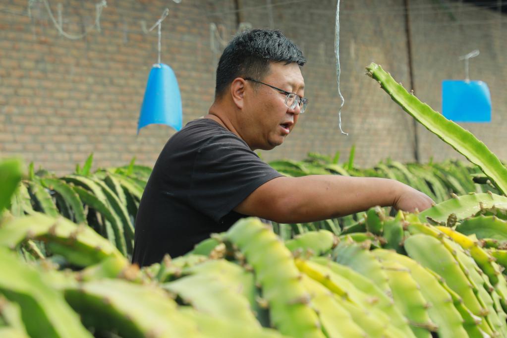 白恒玮在为火龙果修剪枝条。新华社记者 王艳 摄