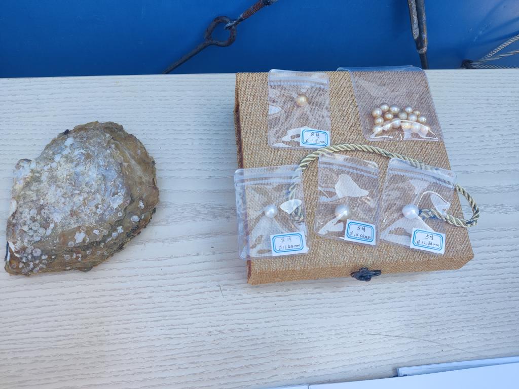 现场负责人庞宁告诉记者,白蝶贝对海水环境要求高,附近没有污染排放、海水流动交换频繁的海域有利于白蝶贝的生存和珍珠的培育。“白蝶贝在这片水域的生长状况很好,大部分已经从8厘米长到14厘米以上,培育的珍珠有白、金两种颜色,最大直径已经达到14.04毫米。”庞宁说。