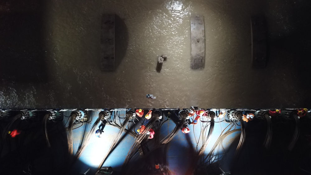 11月20日晚8点左右,“奋力”轮开始提升古船。 “奋力”轮中央敞开的巨大“月池”中,逐渐出现许多快速旋转翻涌的水涡,工作人员有条不紊地操控着两边的提升装置。21日凌晨零时40分,在此起彼伏的快门声中,长江口二号古船断裂的桅杆顶端露出了水面!