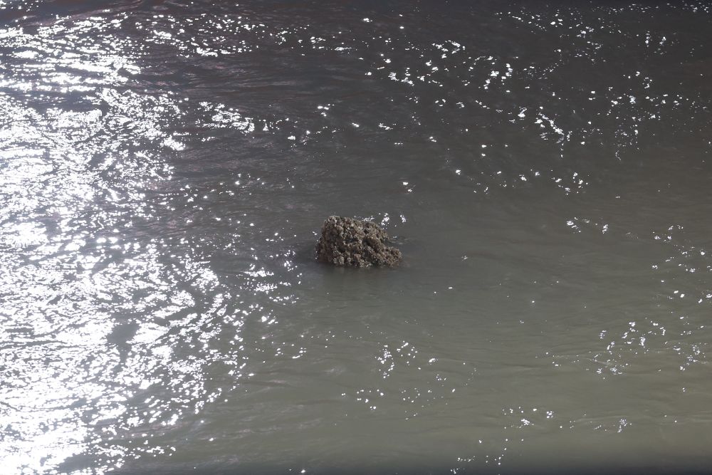 11月20日清晨,我从横沙码头出发,乘船于中午抵达“大力”号,“大力”号旁的“奋力”轮是打捞工程船,正在紧张作业。当天下午,我在“大力”号寻找到了一处可以拍到“奋力”轮打捞古船的高地,拍摄了一张高空视角的图片。